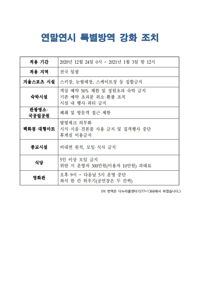 - [생활] 코로나19 관련 연말연시 특별방역 강화 조치(한국어/중국어/베트남어)